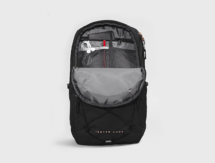 - The Luxe edition features a premium metallic embroidered logo and metallic zipper pulls