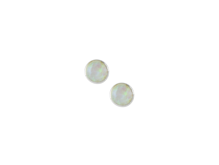 Pretty opal studs pack a ton of iridescent shine; reflecting flashes of pink and teal from sterling silver bezels.