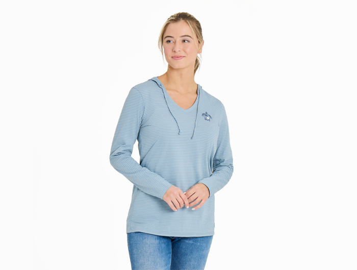 Life is Good Women's Long Sleeve Striped Hooded Crusher Lite Tee - Mini Beach Turtle