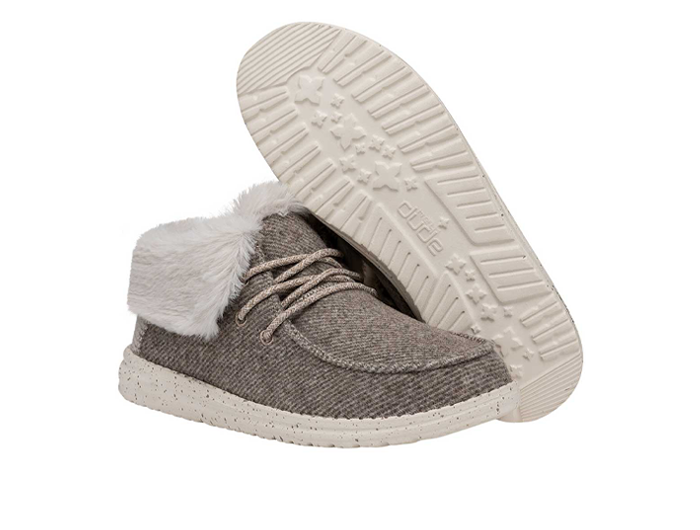Cozy is as cozy does, and the Wendy Fold Boot does it right. A cushioning foam insole and faux-fur lining are all cozy, all the time. The fold-over ankle collar and textured textile upper ooze peak style, plus the signature HEYDUDE™ outsole is flexible and lightweight for “ahhh.” Fall ’fit perfection, achieved.
