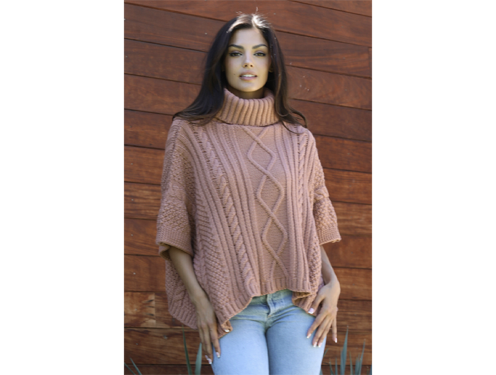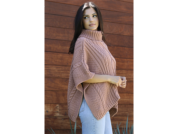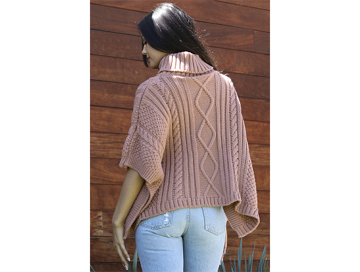 Angie Women's Turtle Neck Cable Knit Sweater Poncho