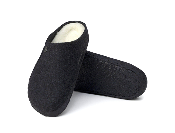 The BIRKENSTOCK Zermatt is our first true slipper. It features our iconic cork latex footbed, and to keep you extra cozy, it’s fully lined in genuine shearling that will keep your feet warm all winter long. The upper consists of soft genuine wool.