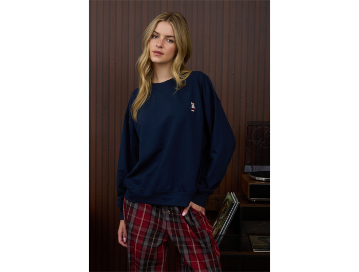 A timeless crew neck sweatshirt with an adorable embroidered teddy on the left chest. A relaxed fit and drop shoulders make this a good fit for every body.