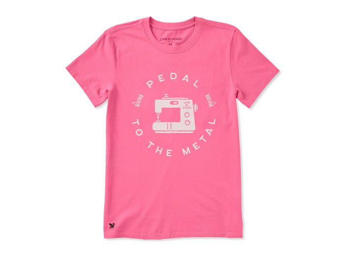Life is Good Women's Crusher Tee - Pedal to the Metal Sewing Machine Circle