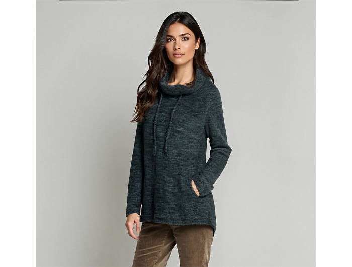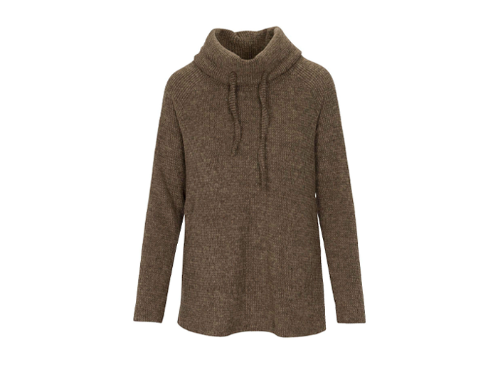 Wear ultimate comfort with this cozy waffle knit pullover. An adjustable cowl neck and drop shoulder seams will have you wearing this all day.