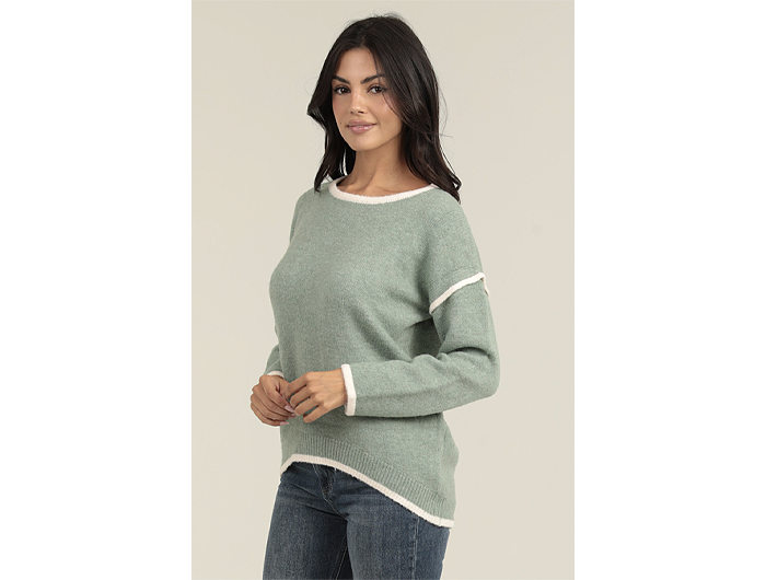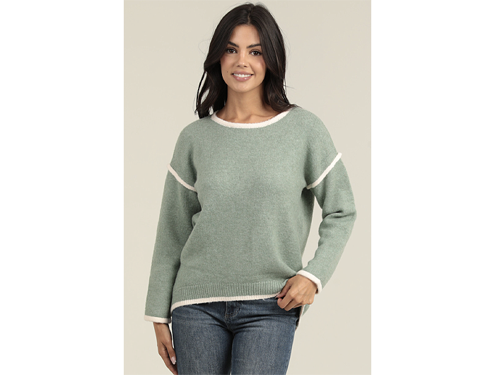 Nostalgia Women's Contrast Trim High-Low Hem Sweater