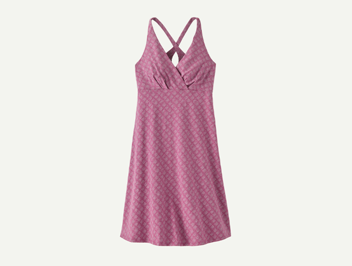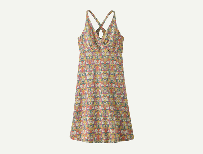 This stretchy, easy-care 96% organic cotton/4% spandex slub-knit jersey dress has a flattering V-front detail and is knee length. Made in a Fair Trade Certified™ factory.