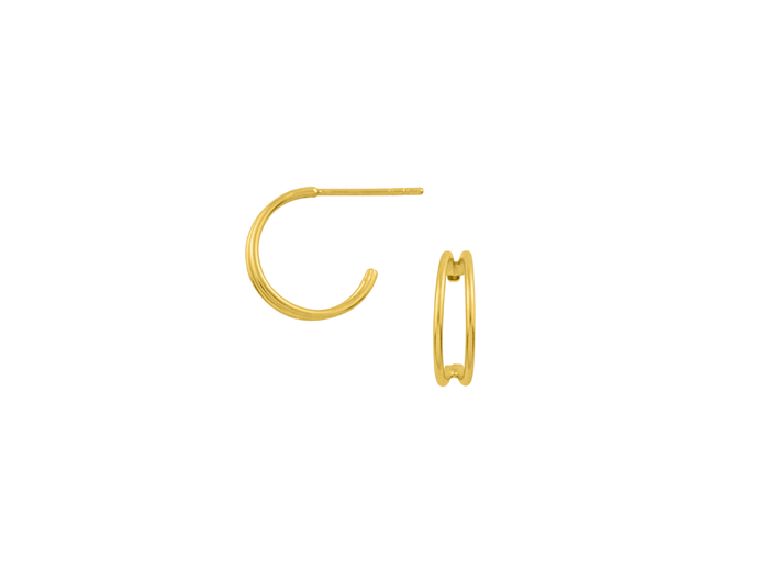 Traditional and light weight sterling silver 14mm half hoop post earrings feature a double hoop look. These classic earrings will never go out of style!